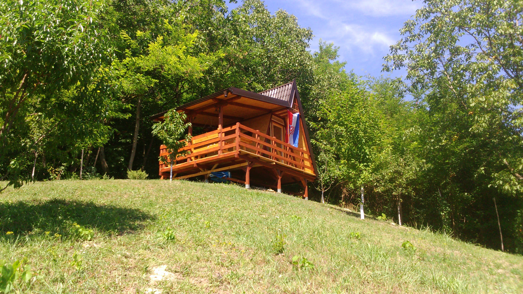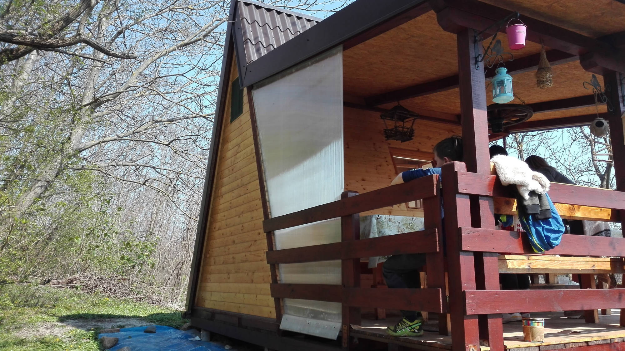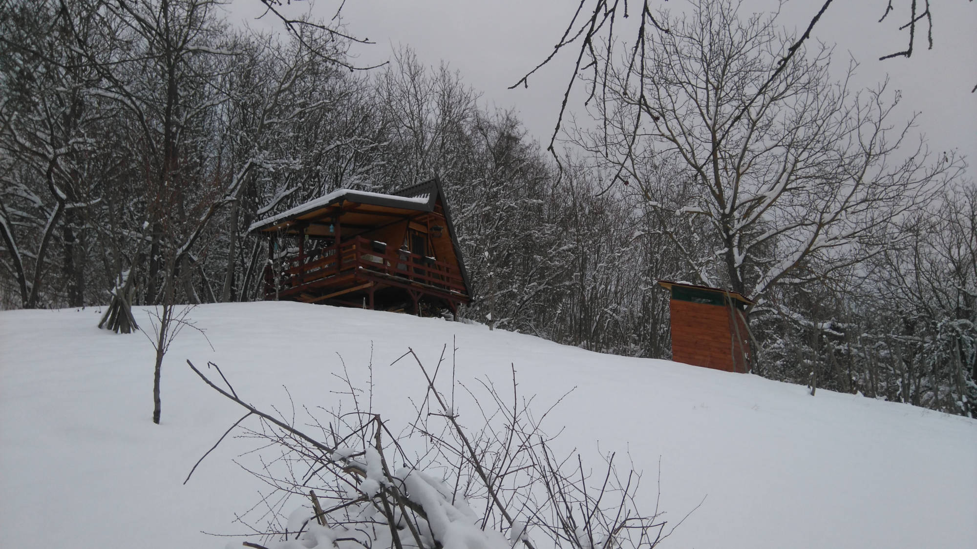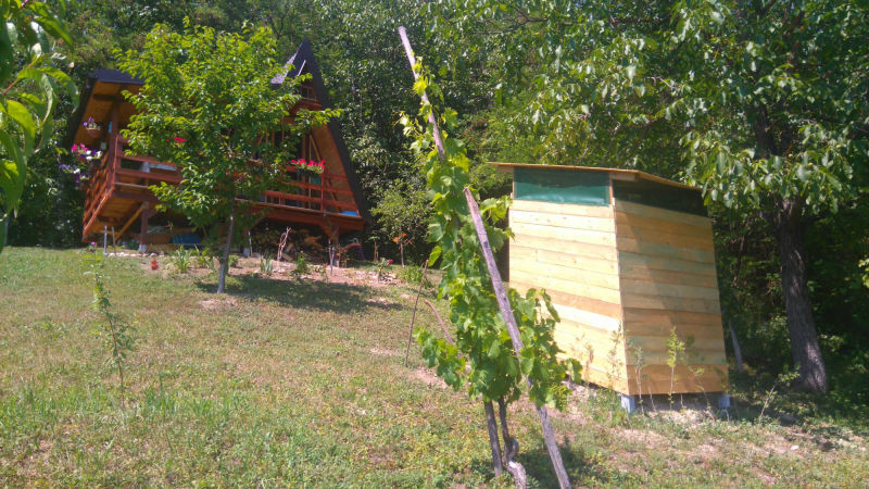 Uz kućicu je izgrađen poljski WC. Nosiva konstrukcija postavljena je također na četiri metalna šiljka, ovaj put dužine 70 cm. Pokrov je također od lima.