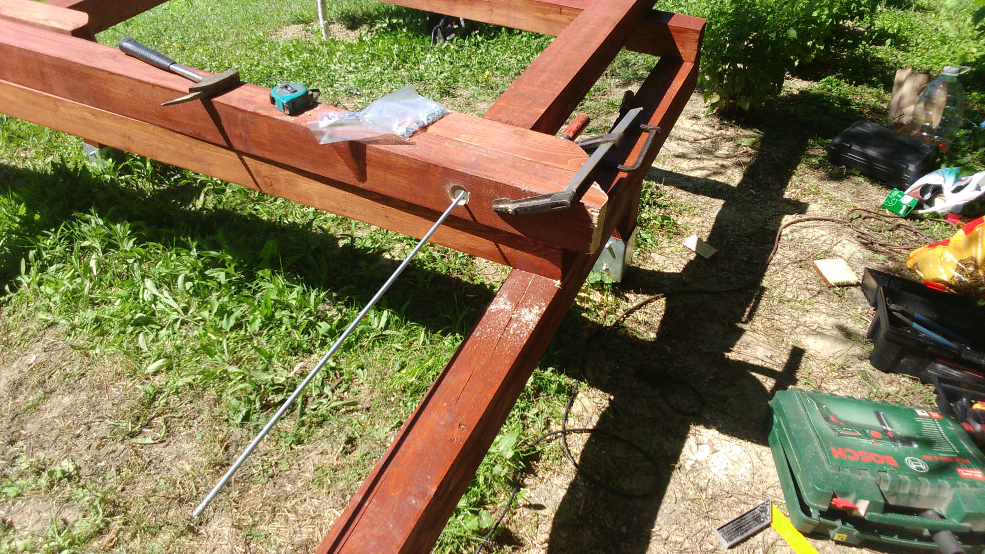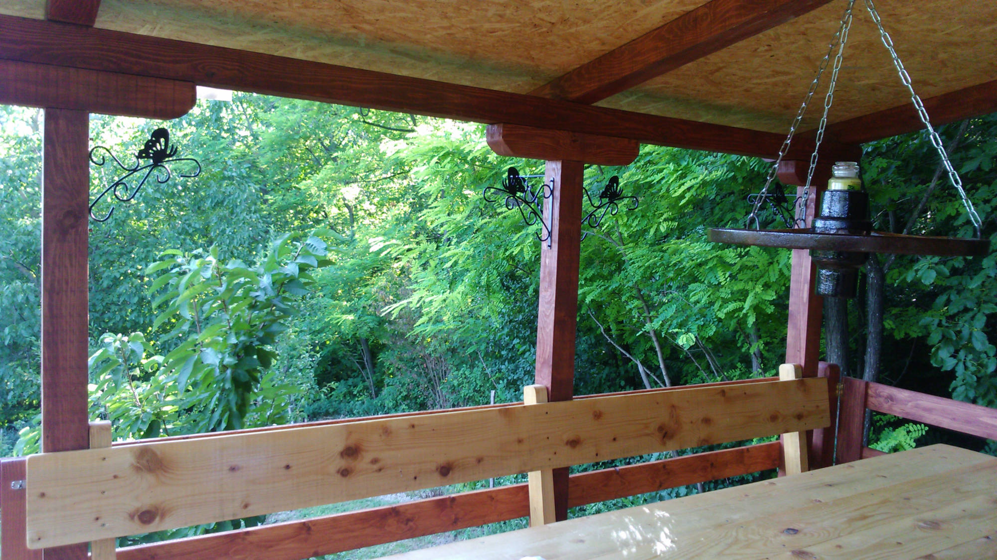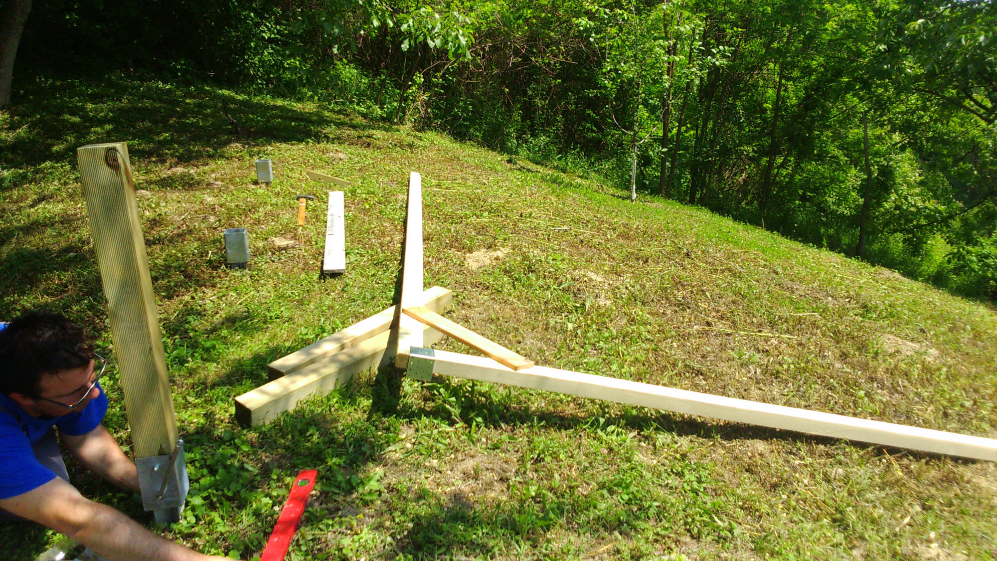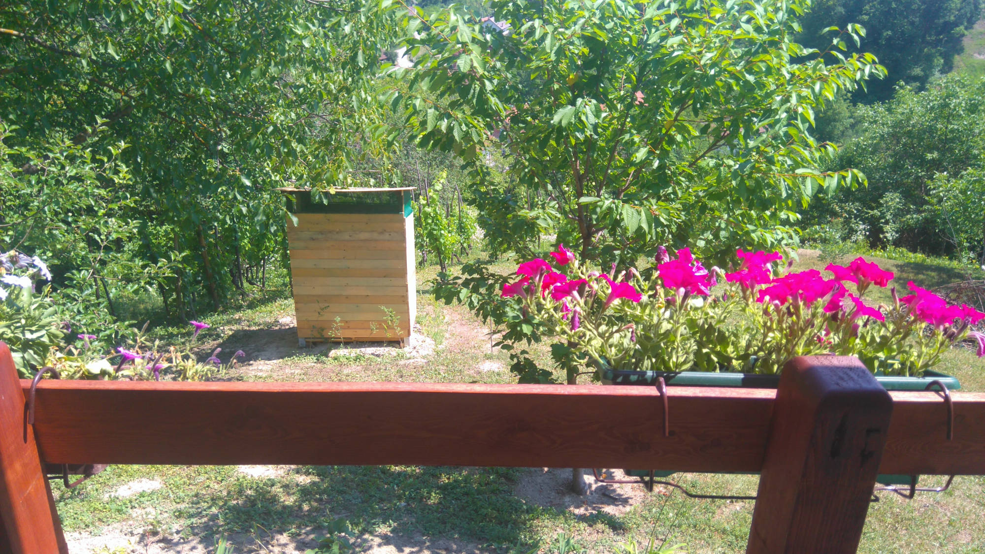 Uz kućicu je izgrađen poljski WC. Nosiva konstrukcija postavljena je također na četiri metalna šiljka, ovaj put dužine 70 cm. Pokrov je također od lima.